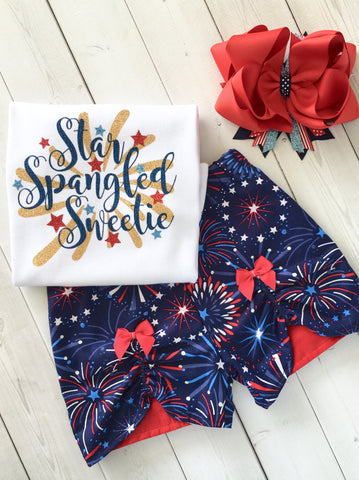 Freedom and Fireworks Star Spangled Sweetie Girl Glitter Peek-A-Boo Short Set